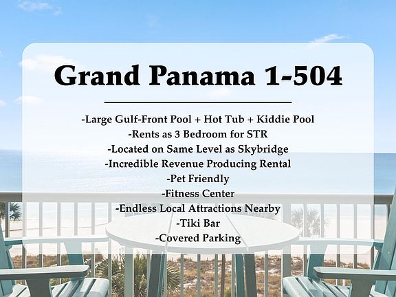 Escape to coastal luxury in this newly updated 5th-floor condo at the highly sought-after Grand Panama Beach Resort—perfectly situated on the same level as the sky bridge for effortless, no-hassle access to the parking garage. Boasting incredible rental income numbers with history - $75K for 2025 and still booking! Rents as 3 Bedroom for Short Term Rentals. From the moment you step inside, you'll feel the fresh, modern vibe of a space that's been fully renovated from top to bottom with all-new showers, countertops, appliances, paint, and stylish coastal-chic furniture.