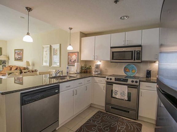Luxurious Gulf front living at one of the best resorts on the Beach ~ Grand Panama. The Gulf front Master Suite opens to the large balcony, also accessed by the living room with panoramic Gulf views. Decorator-perfect finishes including tile floors in the walk way, kitchen and baths. Granite counter tops, stainless steel appliances and beautiful furnishings. All the furniture, and decorations convey with sale. This unit has never been a rental unit.