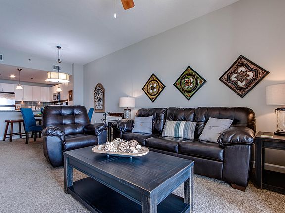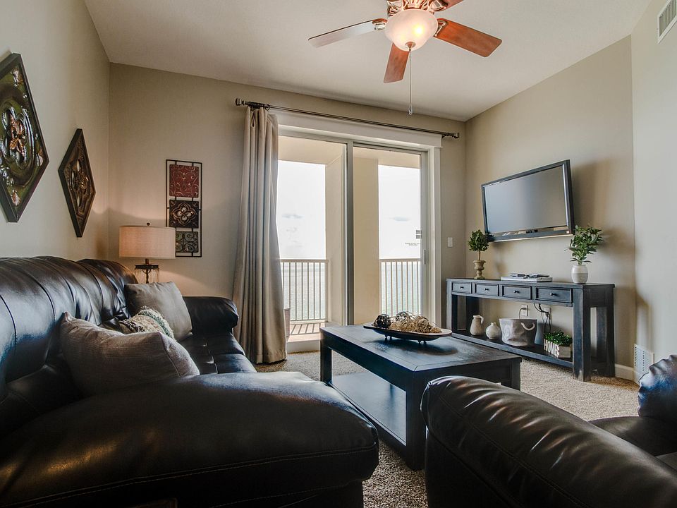 Unit just recently UPGRADED with; leather Living Room furniture (warranty included), Dining Room furniture, Patio furniture, new tile shower enclosure in the Master Bathroom, installed Kitchen pantry, new closet in Master, stocked new Kitchen utensils and glassware, new microwave, fresh paint, and new bedding. This stylish 13th floor condo features an open floor plan with over 1,135 square feet of comfort and luxury. The stylish coastal decor of this two bedroom with bunk, two bathroom home is complimented by carefully selected accent pieces. There is plenty of living space with comfortable seating and sparkling floor to ceiling windows. The private balcony is furnished for dining or lounging and offers a breathtaking view of the Gulf of Mexico.