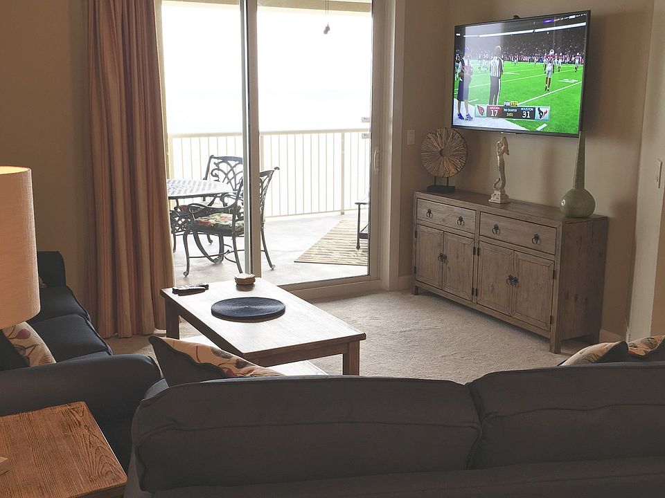 This picturesque 17th floor, 2 bedroom 2 bathroom with bunk condo features over 1,135 square feet in a desirable open floor concept. The bright colors and floral accents give this unit a cheerful, storybook feel. There is plenty of living space with comfortable seating and desirable floor to ceiling windows. The fully-equipped kitchen includes a full range of cookware and high end furnishings with granite counter tops and steel appliances. The private balcony is furnished with a table and chairs and offers a breathtaking view of the Gulf Coast. This condo will accommodate up to 8 guests. This condo features: private balcony with seating, living area with flat screen television, sleeper sofa and balcony access, master bedroom with queen sized bed...
