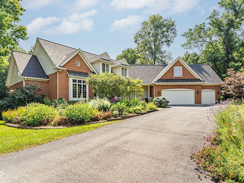 Gorgeous 5 bed 4.5 bath Custom Built home located in the heart of Carmel. Open entry with hardwood floors throughout main level. Primary BR on the main floor has large window with view of garden, spacious bathroom and enormous closet. Beautiful wood working in the oversized office which includes built in bookshelves, french doors, and a window seat. Large dining area easily made private with a pocket door. Open concept kitchen with solid surface countertops, eat in area, all new appliances. Living room with a gas fireplace and built in book shelves with cabinet for TV. Home is wired for sound. Beautiful views in this private setting with mature trees, flowers and a vegetable garden. 2nd level includes a spacious loft, 3 generously sized bedrooms, Jack and Jill bath and private bath. Spacious lower level includes bedroom with private full bathroom, a work out room, theater area, room for a poker, pool and ping pong table, plumbing set up for a wet bar and has walkout to back patio and back yard. Home tucked away from the road on .87 acres with front porch in brick and a back patio secluded from the hustle and bustle. There is no Homeowner's Association.