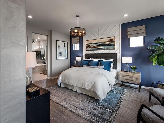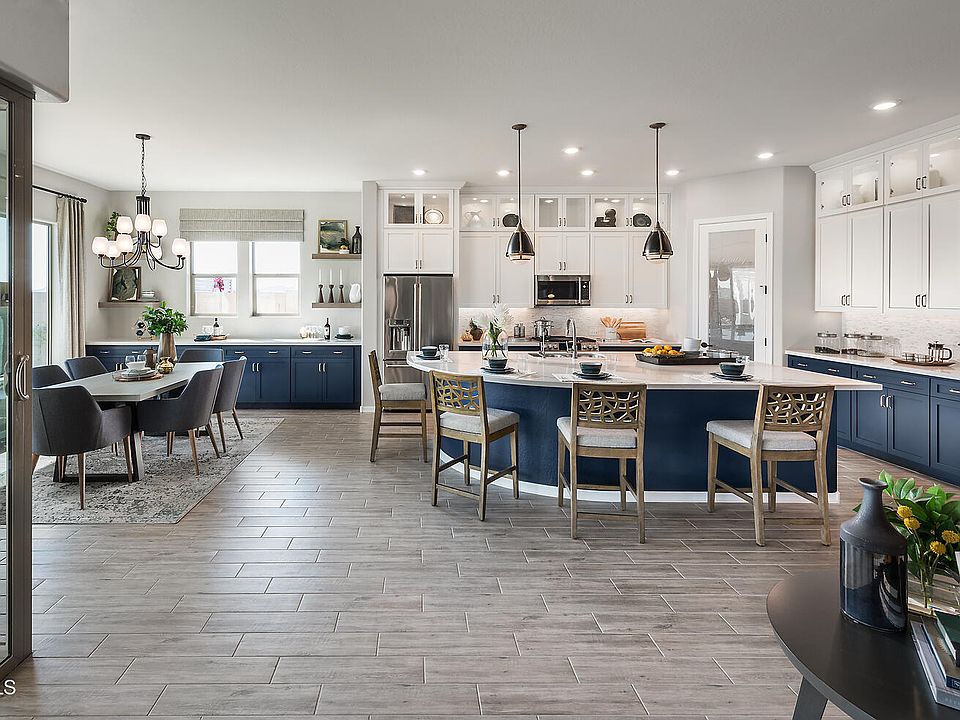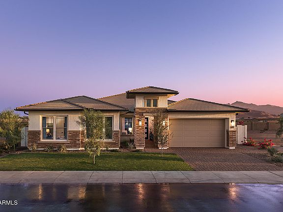 Stunning Fully Furnished Model Home! The home features 3 spacious bedrooms, 2 1/2 baths, a dedicated study, a private retreat, and a 4-car garage. The Chef's kitchen is a showstopper, with stacked white cabinetry, glass accents with lighting and quartz countertops. It's equipped with top-of-the-line Café appliances, including a gas range and Smart Refrigerator with a Keurig Brewing System. The open living areas boast 10' and 11' ceilings throughout, with a seamless flow that's enhanced by a 90° sliding glass door, offering direct access to the stunning backyard. Pebble Tec pool with sheer descent waterfalls, ramada with a gas BBQ. The lush turf ensures easy maintenance, making the backyard perfect for both relaxing and entertaining. Built in cabinets and designer touches throughout.
