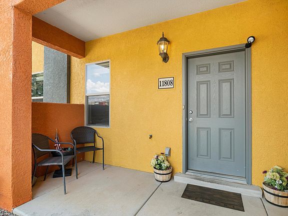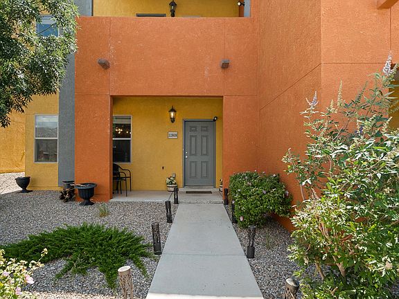 End-Unit Townhouse in Volterra Village. This charming 2-bedroom townhouse offers modern living in a prime locationwith stunning views. The kitchen features granite counters and bar, a large pantry, and stainless appliances including gas range. Primary bedroom features a private balcony to sit and enjoy both sunrise and sunset. Sweet enclosed backyard, nestled between the house and detached 2-car garage w/ a private driveway, is perfect for outdoor relaxation. Just minutes from Sandia National Labs and Kirtland Air Force Base AFB, this home is ideal for easy, comfortable living. See it before it's gone - call me or your Realtor to schedule a showing today. Flooring credit for removed carpet w/ acceptable offer.