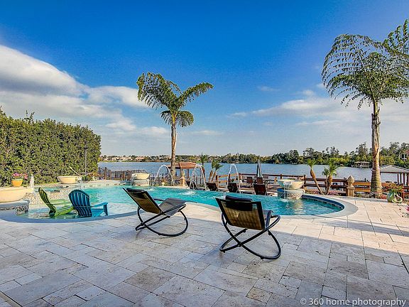 Stunning, majestic luxury Windermere lakefront home, in pristine condition. Jaw dropping views of the lake, woods, and wildlife. Resort living year round with the most deluxe pool and backyard to be found! Top of the line finishes including travertine and solid wood floors, new carpet, granite counters, plantation shutters. Many recent improvements and updates. New HVAC units. Very sensible floor plan. The backyard is a true paradise with salt water disappearing edge pool, gas tiki torches, huge summer kitchen with new appliances, new landscaping, copper gutters, new mosquito misting system, large covered lanai plus second floor covered balcony. The Best lot in the neighborhood with privacy and space, long driveway, and no neighbors across the street. Oversized four car garage plus attic storage. Radiant heat barrier in the attic. Master bedroom, office, bonus room, secondary bedroom all on first floor. Extensive upgraded crown molding and baseboards. This home is quality, quality, quality, needs nothing and is move in ready! Guard gated Windermere Community with fitness center and tennis courts included in HOA dues. One of a kind opportunity! Some furniture & jet skis are negotiable. View the 3D virtual tour!