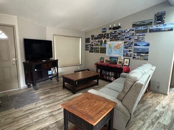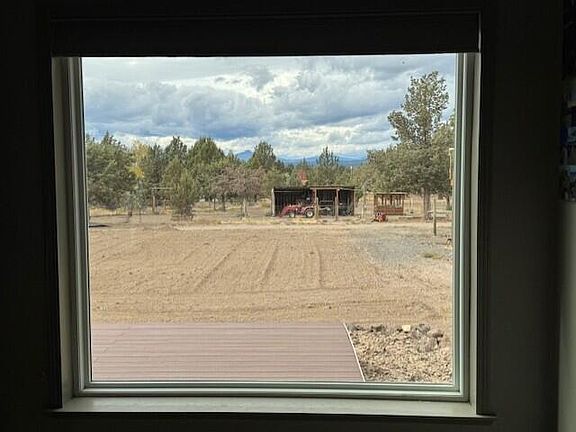 Nicely updated manufactured home with mini splits, solar panels, & newer roof. Stylish kitchen features new cabinets, countertops, backsplash, lighting, appliances, & eating bar. Wood laminate and tile flooring, factory-installed woodburning fireplace, and tons of windows to bring in the sunlight. The primary bedroom ensuite is complete with soaking tub, walk in closet, and is well separated from two additional bedrooms and full bath. Front & back decks boast new Trex decking and the back deck offers a great space to relax and watch your animals or enjoy filtered Cascade Mountain views. Mature junipers dot the landscape on this fully fenced parcel, with an additional chain link fenced yard to contain small animals or kiddos. There are outbuildings including a hayshed, machine/equipment shed, and shelter for horses, goats etc. There is also a 12x12' shop perfect for wood working or other hobbies. A large riding arena includes all livestock panels and is accessed via cross fenced areas.