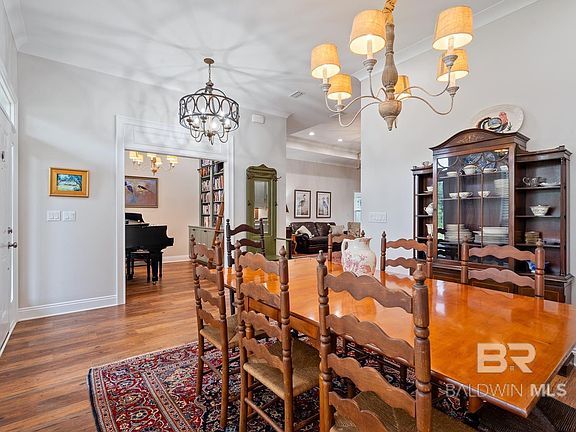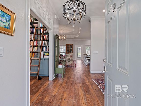 This beautifully customized home is filled with high-end finishes and thoughtful design throughout. The main living area features 10-foot ceilings with a trayed ceiling that adds architectural interest. The gourmet kitchen is a standout, offering custom cabinetry, quartzite countertops, and a stainless ZLINE appliance package—including a 6-burner gas stove with electric oven, pot filler, drawer microwave, and a coffee bar with its own pot filler. Small appliance garages flank each side of the stove for a clean, functional workspace.Bring the outdoors in by sliding aside the triple glass doors for casual meals on the screened porch and around the spacious kitchen island or enjoy a more formal tone in the dedicated dining room. Love to read? You'll appreciate the custom floor-to-ceiling bookshelves in the library/office. Upgraded bathrooms and luxury vinyl plank flooring throughout the home provide both style and durability. Additional features include a heated saltwater pool, tankless water heater, Gas Lanterns, and a whole-house generator. Roof is fortified and approximately 4 years old. Every detail of this home has been carefully curated for comfort, convenience, and timeless style. Buyer to verify all information during due diligence.