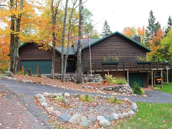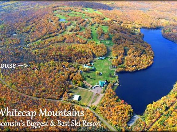 Custom Cedar Chalet Style Home in a Dream Ski Resort Location. This approx. 4476 Sq.Ft. 3 bedroom, 3 bath is set into a private landscaped setting at the base of Whitecap Mountains Ski & Skye Golf Resort. You are in recreational heaven with some of the best skiing in the midwest, the breathtaking mountain top golf course, snowmobile & ATV trails at your doorstep, and the nearby Weber Lake County Park. The beautiful house has a magnificent vaulted great room with a fieldstone fireplace and stunning taconite hearth, a beautiful kitchen with hickory cabinets, & a taconite island countertop, a walkout basement rec room with bar, freestanding fireplace, pool table, a large cedar sauna, main floor laundry, a master bedroom suite with a two person black granite jacuzzi tub, a huge patio deck, an attached 3 car garage, plus a drive under garage workshop too.