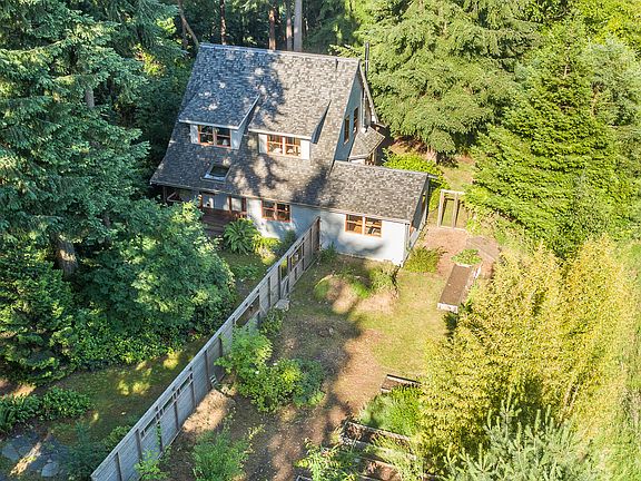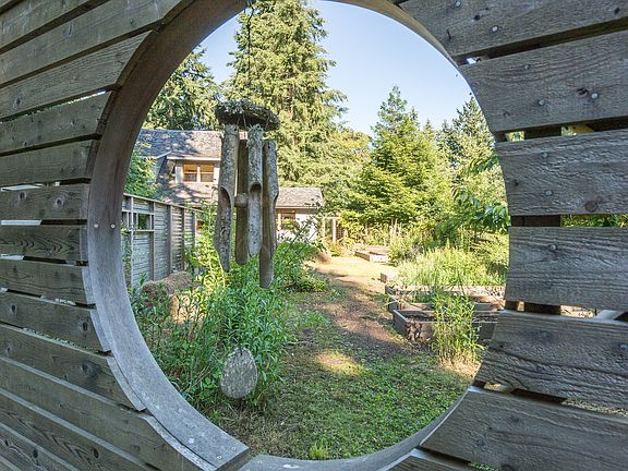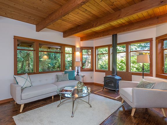 Comfortable living in this impressive NW contemporary home in desirable north-end location. Quiet serenity in this private setting w/1.73 acres of mature native landscaping, fruit trees, fenced garden, healthy & diverse forest & stunning ravine. Open floor plan, planked wood ceiling, exposed beams, fir windows/trim/doors, wood stove, quality materials & artisan touches. Enjoy the covered deck, chicken coop, studio,hot tub & more. Fabulous location near ferry to Seattle.A commuters dream!