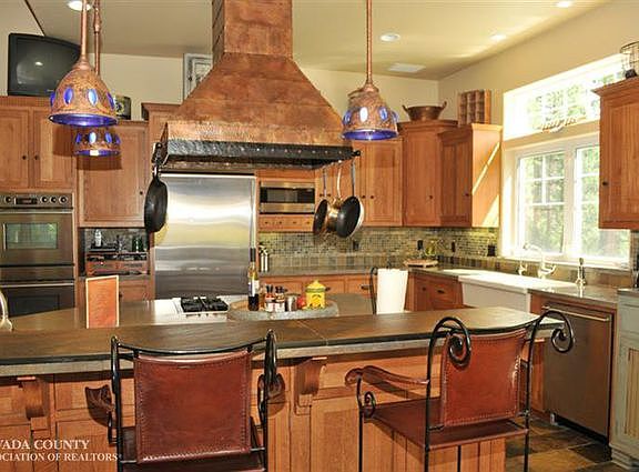 BE AMAZED! ONE of Nevada County's MOST Unique Homes! 4600 sf Fashioned after an Old Gold Mine features Hand Crafted Appointments Throughout. Hand Finished Floors, Antique Wine Barrel hand railings, Open Beams from an Old Covered Bridge, Functioning Ore Cart brings Firewood in! Lots of Natural Sunlight & Remote Controlled Skylights. This Energy Efficient Treasure has a True Chef's Kitchen w/ Butler Pantry, Slate floors & Limestone Counters , Formal Dining area, Huge Great Room w/ Rock Fireplace. 4 Bedrooms + Large area for Theatre/Game Room! Main Level Master Suite + 2nd Master Suite upstairs. Attached Oversized 3 Car Garage + Detached 2500 +/- sf Shop w/ large Loft for Additional Storage & Attached RV Carport! Separate 780 sf Ground Level 1/1 + office Guest House. Covered Outdoor Kitchen. Beautifully Landscaped Sunny lot w/ Extensive Off Street Parking; an Entertainers Dream! Fantastic Solar Site! You will NOT find another Home like this in Nevada County! Just Minutes to Downtown!