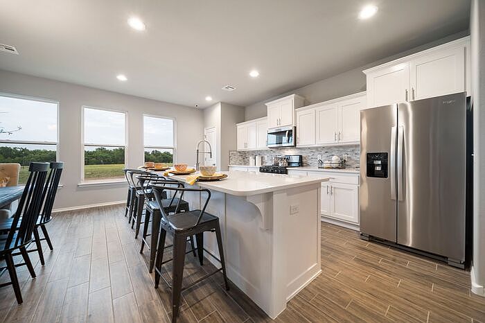 Sleek and modern kitchenFully fenced backyardOpen conceptEye catching curb appealLuxury vinyl plank floorsHuge walk in closetsGas fireplace