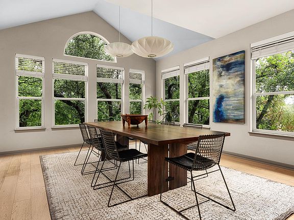 Substantial stone fireplaceYear-round creekFull guesthouseFloor to ceiling glassWhite oak hardwood floorsQuartz countertopsUpdated windows and doors