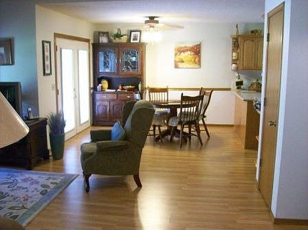 Move in Ready, No Specials! Great Ranch with many updates including wood laminate flooring covering the full main floor, new lighting, paint, must see newer kitchen cabinets, corian countertops. Open Floor Plan w/vaulted ceilings and french doors to wood deck. Backyard has privacy fence and rod iron mixture.