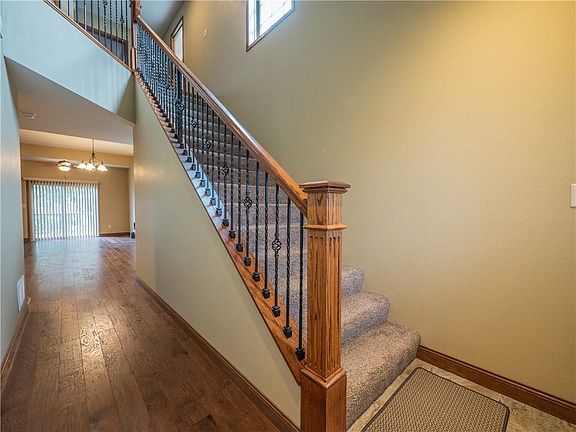 Beautifully built 3 bedroom, 2 1/2 bath duplex. Gorgeous 2 story entryway with higher end finishes! No expense was spared with 9' ceilings, solid oak flooring, trim, and banister with tile flooring on main level. Solid oak cabinets and solid surface countertops throughout kitchen with stainless steel appliances. Extended 1 car garage for more storage or larger vehicle. Vaulted ceilings in master bedroom with large walk-in closet. Master bathroom has walk-in shower, solid wood cabinets and solid surface countertops. New roof in October 2023. Located in a great neighborhood and minutes from Northwest Missouri State University, Maryville Country Club, local dining, and entertainment!