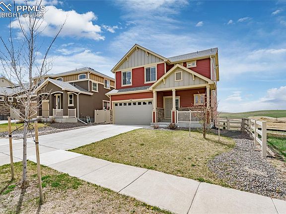 This stunning Erie Highlands two-story home boasts incredible views of the front range and offers a bright and open concept on the main floor. The living room features a cozy gas fireplace, making it a perfect spot to relax and enjoy the stunning views. Situated in a quiet neighborhood, this home also comes with access to a clubhouse, pool, workout center, and walking and bike trails. As an end unit, this home offers more privacy. The large eat-in kitchen is a chef's dream, complete with a beautiful island with quartz countertops, a gas stove, pantry, and stunning blue subway tile backsplash. You can even enjoy the mountain views from the kitchen! Step out onto the deck off of the living room and enjoy epic views of the front range from the comfort of your own home. The main floor also has a powder room off of the front foyer. Upstairs, there are four bedrooms including a loft, laundry room, and two baths. The primary bedroom boasts stunning mountain views, a walk-in closet and a 3/4 bath on suite. The bedroom next to the primary could be used as a nursery, bedroom, or office with even more mountain views. Head down to the recently finished and permitted basement where you'll find a family room complete with an electric fireplace, wet bar with quartz countertop, beverage refrigerator, and beautiful tile backsplash. The 3/4 bath in the basement is just as stunning, and there's even a fifth bedroom and storage room! This home truly has it all - stunning views, modern finishes, and access to great amenities. Don't miss your chance to make this your dream home.