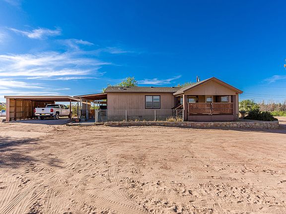 Open floor Home with 2494 S.F. 4 Bedroom 3 Bathroom. Features a kitchen with island, Dining room, living room, Family room and play room. All Tile. 2 Master cool A/C units. Central heating. On approximate 7.46 acres of land. Direct access to BLM land next to the west. For horse riding or enjoying nature. Beautiful Mountain views. 2 water wells. 2 septic tanks and 2 Hobby shops/storage. Horse stalls and Hay barn. ALSO INCLUDED IS A SECOND HOME, 2008 SOLITAIRE MOBIL HOME 1456 S.F. 3 BEDROOM 2 BATHS, CARPORT AND COVERED PORCH THAT IS RENTED FOR $700 A MONTH INCOME. Easy access to I-10, Hwy 28, McNutt Rd, Outlet Mall, El Paso, TX and Las Cruces, NM.