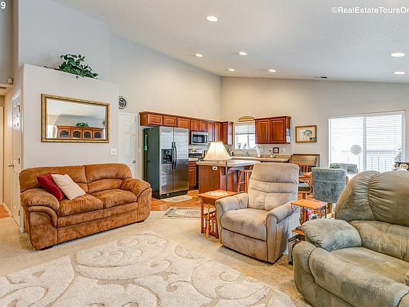 Seller has moved out. Sale fail just days before closing. Large corner lot with a popular single level plan, 3 bd, 2bth, with soaring vaulted ceilings in the living room, kitchen, and dining. Lots of canned lighting. Floor covering allowance of $4000 for new carpet with acceptable offer. Listing Broker related to seller