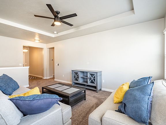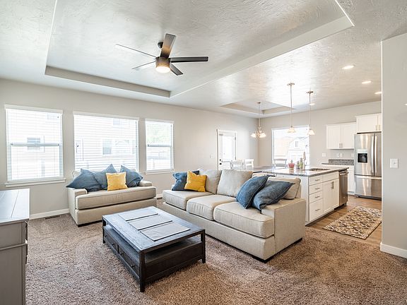 This gorgeous rambler, located close to Weber Canyon and highway 84, was built by DR Horton in 2016 and is in pristine condition. The master suite has a large walk-in closet with a separate tub and shower. The kitchen has new stainless steel appliances, a gas stove, a large island, and gorgeous granite countertops. The home has beautiful 2 tone paint throughout and plenty of storage. The spacious 3 car garage includes extra length perfect for storing recreational vehicles. Also included with the property (as pictured) is the couch set, kitchen table, coffee table, TV stand, and the Adirondack chairs. Feel free to check out the Virtual Tour. *All furniture in the home is staying