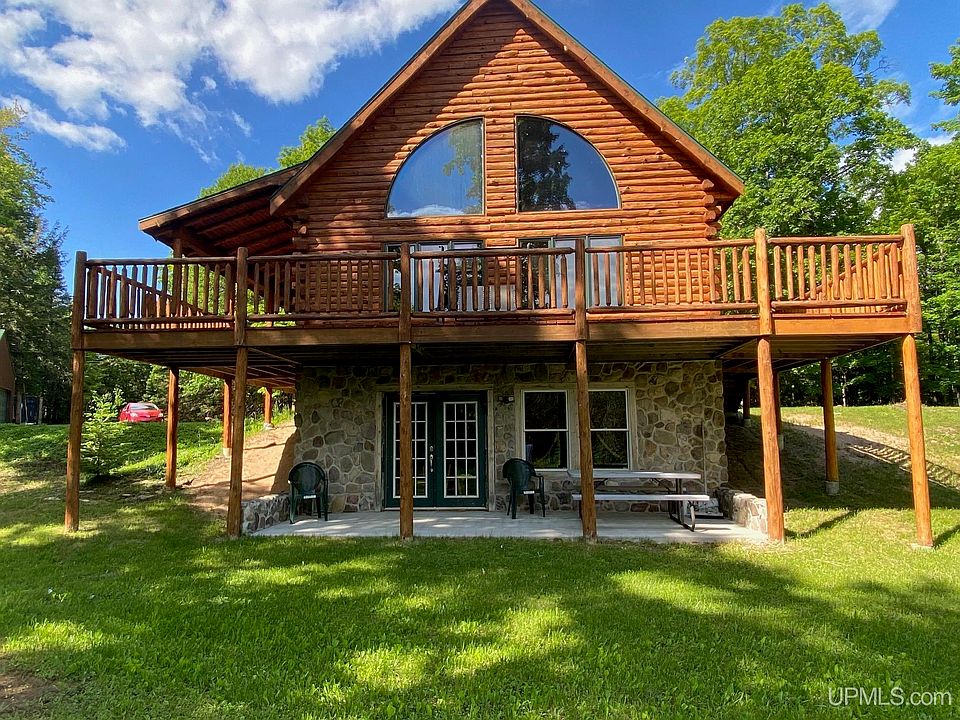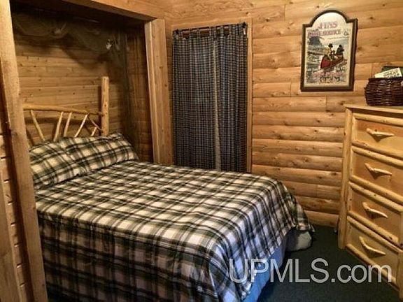 Beautiful Cedar log cabin on 110 +/- acres with approx 2500' frontage both sides on W Branch Whitefish River. Bonus room used as nonconforming bedroom.