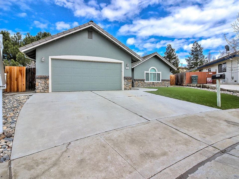 WOW - 12 Reasons to buy! First, there's March and every month there after will seem like a vacation in this beautiful home. This home features Fresh paint inside and out, new vinyl windows and new window coverings including plantation shutters. Large living areas with volume ceilings. Plenty of wood flooring. The kitchen includes a breakfast bar. The master bathroom has been remodeled that feature a custom shower and sink vanities. As an added plus - this lot is over 8500 square feet - plenty of room for a pool or sport court and with synthetic grass at the front and rear - no need for a lawn mower. As an added bonus - there are two storage sheds (10 X 16 and 8 X 8). A must see home!