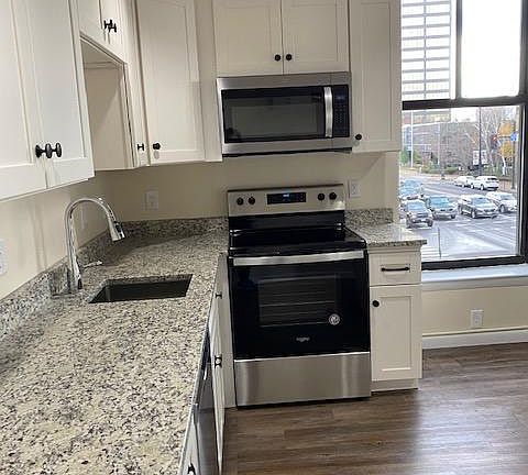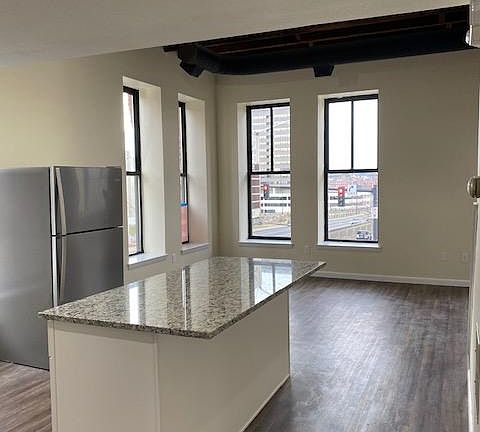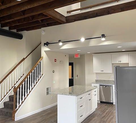 One of a kind NEWLY renovated loft space on Elm Street (downtown) with many window views and central skylight illuminating daylight. WHITE AND BRIGHT NEW FULL KITCHEN with granite and large Island. Unique open floor plan with multiple floors up to 3 LARGE rooms, or additional living room , office space , home gym, located in the Historic Chandler Building on corner of Elm & Bridge Street. Private washer and dryer in unit. Parking available for two mid size cars . No smoking or Vaping policy on this property, NO Pets .