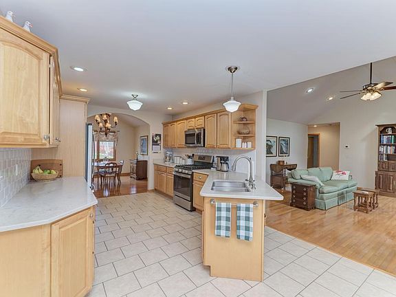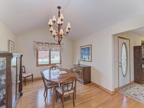Immaculate 3 bedroom 2 1/2 bath ranch home with full basement located in Wilmington's Kahler Ridge Subdivision. Home features spacious great room with cathedral ceiling, skylights & fireplace. Gourmet kitchen with all SS appliances & quartz c-tops. 14x22 master suite with trayed ceiling, walk in closet & full bath double sinks, tub & separate shower. Formal dining room has arched doorway. Hardwood flooring, exterior trex deck, PVC fencing. Oversized garage with separate basement entrance. Recent updates include Hi E furnace 2021, Central air 2024, hot water heater 2022. This home shows mint and looks brand new!!