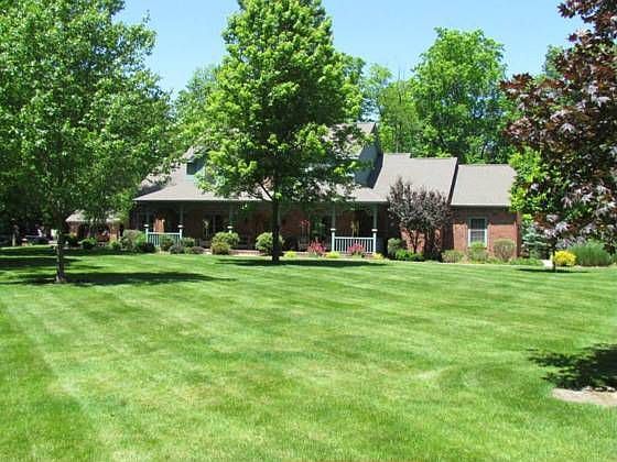 Quality and unbelievable setting,the private drive leads you to a breathtaking home with 2 waterfalls,pool w/pool house, gorgeous landscaping on 7.362 acres of ground. This spectacular home features custom everything:crown molding,trim,Oak and Cherry doors.Large kitchen includes an eating bar and breakfast nook.Great Rm is perfect for entertaining or just peaceful nights by the large fireplace.Basement offers custom worm-oak bar and a woodburing stone fireplace.This spacious home offers 5590sqft