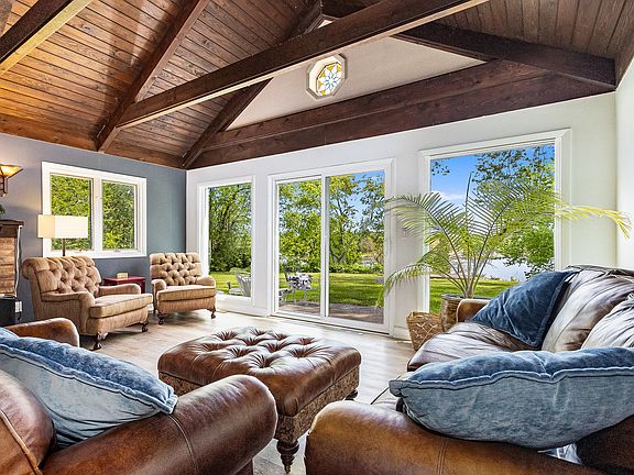 Welcome to your idyllic retreat! This charming 3 bedroom 1 1/2 bath home is nestled along the shores of Lake Holiday. It has a perfect blend of simplicity and natural beauty! Unwind and savor the sunrises each morning from your expansive wall of windows! You will love the ambience of the vaulted, rustic, wood beamed ceilings and the wood burning brick fireplace. Live a life of leisure and fish from your pier on one of the best spots on the lake. This custom built home has had many upgrades since 2020 including updated kitchen with white quartz counter tops, gold faucets, hardware and SS appliances. Both bathrooms have been updated. High-end vinyl plank flooring through-out home for easy clean-up. Furnace, central air, water heater, and roof are all newer. Mechanical septic system replaced in 2018. All bigger ticket items have been taken care of, just come and enjoy everything Lake Holiday has to offer. The open floor plan flows nicely to outside patio for your outdoor BBQ's and entertaining. Nice level lot with stairs to the lake. Enjoy the swing at waters edge and take the steps down to your pier, patio/deck to relax or boat and be on the water in minutes. Updated terraced seawall and patio too! Must see to appreciate the views and location of this home! Just a one hour commute from Naperville and an hour 30 from Chicago. The perfect getaway to enjoy swimming, boating, fishing, water skiing, nature trails, pickleball, skatepark, and so much more!