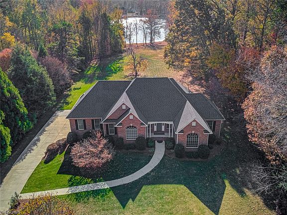 This one-of-a-kind, one owner home in Kernersville offers the perfect blend of space, & serenity. A single-story brick traditional residence, custom-built by Don Williams Construction, is set on a sprawling 1 ac. lot overlooking a picturesque spring-fed lake. Vaulted ceilings in the den and an open floor plan from the kitchen create a spacious and inviting atmosphere. The sunroom leads to a generous deck, ideal for both dining & lounging, making it the perfect spot to chill out. Primary bedroom is tucked away in its own private wing, has double vanities, jetted tub and stand up shower & huge closet! The opposite side of the home has 3 more bedrooms. The walkout basement is partially finished, has a room used for a 5th bedroom, complete w/ a private full bathroom, versatile playroom & office space. An additional 1,000 sqft of unfinished basement perfect for holiday storage. The yard is an outdoor enthusiast's dream, offering space for ball games, hitting golf balls and lakeside parties.