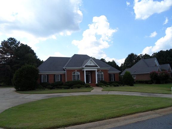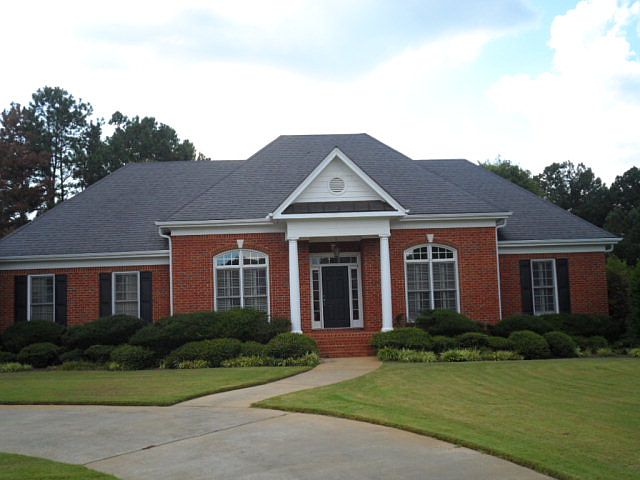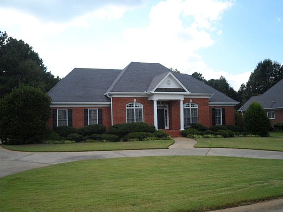 This all brick home all on one level is a unique opportunity first time ever offered...this one owner home backs up to the 5th fairway of Jennings Mill golf course and has a huge yard in back and a circular drive in front for plenty of guest parking...from 9' ceilings to really pretty crown work, split bedroom plan and oversized two car garage....it truly has great bones to create your own space...and ready for your personal taste of carpet and your kitchen appliances. It has a really pretty foyer with dining room off to left and living room or office off to right, french doors, wood floors and really nice private views out the back windows and from the master...show anytime.