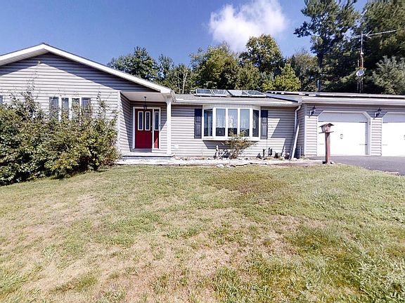 Three bedroom, 2.5 bath rancher with attached two car garage. Overlooks scenic Quaker Valley. Floorplan is partially open. Formal entry - living room. Dining/kitchen with island. Primary bedroom and bath with walk-in closet. Two additional bedrooms. Lower level has family room, pellet stove, laundry & half bath. Rear deck to enjoy awesome views! All on an acre lot. The 20 solar panels and wind generator are owned.