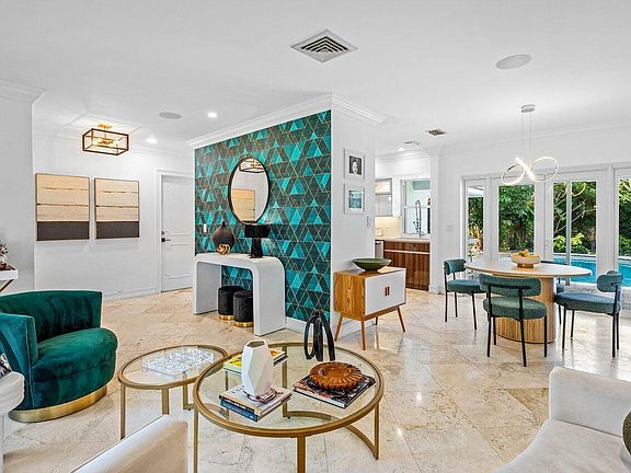 Walnut Terrace is a beautifully updated home tucked within the charming Camino Gardens neighborhood. Thoughtful improvements include a newer roof, renovated kitchen and bathrooms, updated flooring, and a resurfaced pool. Impact-grade windows and doors are featured throughout, along with a Sonos sound system. The well-designed split floor plan offers a private primary suite, a central kitchen overlooking the backyard, and two distinct entertaining areas. Outside, the property opens to a fantastic backyard retreat with a large, organic-shaped pool surrounded by marble pavers and lush landscaping--ideal for both relaxing and entertaining. Private, turnkey, and conveniently located just minutes from downtown Boca Raton.