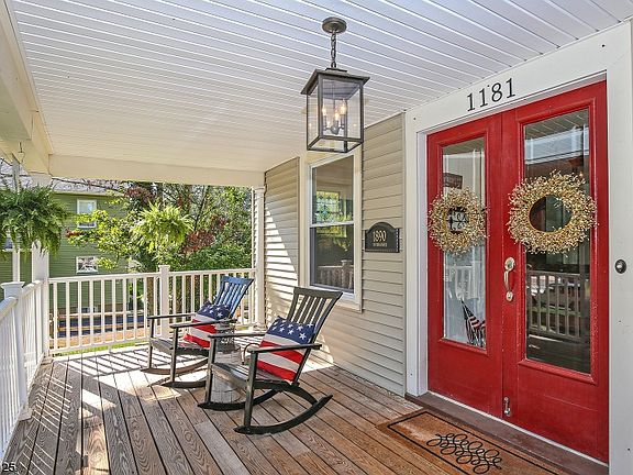 Character and cachet abound both inside and out for this 1890 Victorian home with architectural features that delight at every turn. Its curb appeal makes a lasting impression, beginning with a delightful covered rocking chair porch to greet the visitor. Double glass entry doors and vestibule introduce an entry hall with that culminates in a decorative corner fireplace, anchored on checkerboard hardwood floors with ribbon banded borders that run throughout the living room and dining room as well. Nine-foot high ceilings run throughout the first floor, with elaborate millwork and wide pillared entries into its formal rooms. The living room is illuminated by three original stained glass windows, while the formal dining room enjoys front views from oversized windows. The kitchen is vintage chic, poised beneath a beamed ceiling, with warm, cream cabinetry set against granite countertops with a new Samsung refrigerator (2016) and a decorative fireplace that harkens back to a bygone era. A butler’s service area and mud room with rear entry off the kitchen add convenience, along with a cozy, decorative fireside den/office and a full bath located nearby. A spacious front-to-back family room enjoys oversized windows on three sides above raised panel wainscoting, with another decorative fireplace flanked by new custom built-in library shelving--the perfect gathering place for informal entertaining. Three bright bedrooms, each with hardwood floors and oversized windows, reside on the second floor, including the master bedroom. Enhanced with large windows on two sides, the bedroom features a walk-in closet, full bath and an adjoining "bonus" room that may be converted into a sitting room, master bath, home office or closet--buyer's choice! A full hall bath with tub shower, along with a separate room that is ready to be converted to a laundry room, complete this level. The third floor is host to two additional bedrooms (one is an ensuite), as well as a huge walk-in closet and additional bonus room for added versatility. The rear yard is level and fenced, complete with a generous parking court and drive. Located convenient to downtown, shopping and New York City trains in one of New Jersey's top rated school districts, this home will delight the homebuyer with an eye for old world charm.