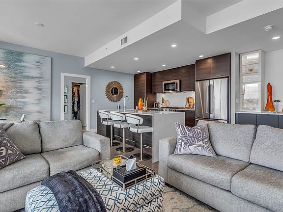 Not your average One Water Street apartment! UNOBSTRUCTED lake, city and mountain viewsfrom every window. HUGE deck. Lovingly maintained two bedroom unit with split floor plan. Bright island kitchen with built in coffee bar/ hutch, stainless steel appliances and loads of cabinets finished with pantry style pull out shelves. Spacious king accommodating primary suite with floor to ceiling windows, 5 piece ensuite and walk-in closet. Beautifully finished throughout. The 20th floor offers a view that is not so high you can't enjoy the view but high enough to be above any obstructions. One Water Street offers a 1.3-acre oasis of resort-style amenities. Residents enjoy access to two outdoor pools, inviting lounge areas with fire pits, a state-of-the-art fitness center with a yoga studio, an entertainment space, a business center, a pickleball court, and guest suites. The building's prime location places residents within easy reach of on-site restaurants and coffee shops, and within walking distance of the beach, the lake, downtown Kelowna, and the yacht club. To enhance convenience, the residence includes a dedicated parking stall and storage locker. This One Water Street condo is more than a home; it's a lifestyle, offering unparalleled views and a wealth of amenities in a prime location.