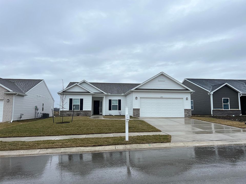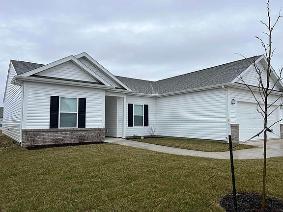 Beautiful, newly constructed 1,704 square foot 3 bedroom plus den, 2 bath home in West Lafayette's Fieldstone at the Crossing community. Home features 9' ceilings, open concept,vinyl plank flooring in living areas, and a spilt design plan. Kitchen features custom cabinetry, large island with seating, solid surface countertops, pantry, and stainless steel appliances. Master suite features a walk-in shower, dual vanity, and large walk-in closet. Landscaping package, Triton water softener, 2" Wonderwood blinds, washer/ dryer, and a large rear patio for outdoor entertaining are also included! Home is conveniently located less than a mile from elementary, middle, and high schools. Also, close to shopping, restaurants,West Lafayette parks, wellness center, and both US 52/I65.