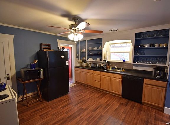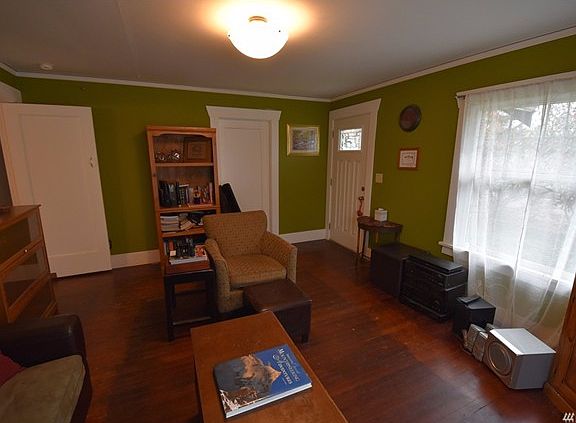Great starter home for sale with lots of potential! 2 bedroom, 1 bath renovated craftsman with an unfinished basement. Large, sunny south facing backyard with a charming gazebo, fire pit and a variety of fruit trees: apple, cherry, plum & asian pear. Covered back deck. Updated bathroom and kitchen. Hardwood floors throughout. Loft-style 2nd bedroom with additional space for an office or reading nook. Just off of Northwest Ave with easy access to Bellingham or Ferndale.