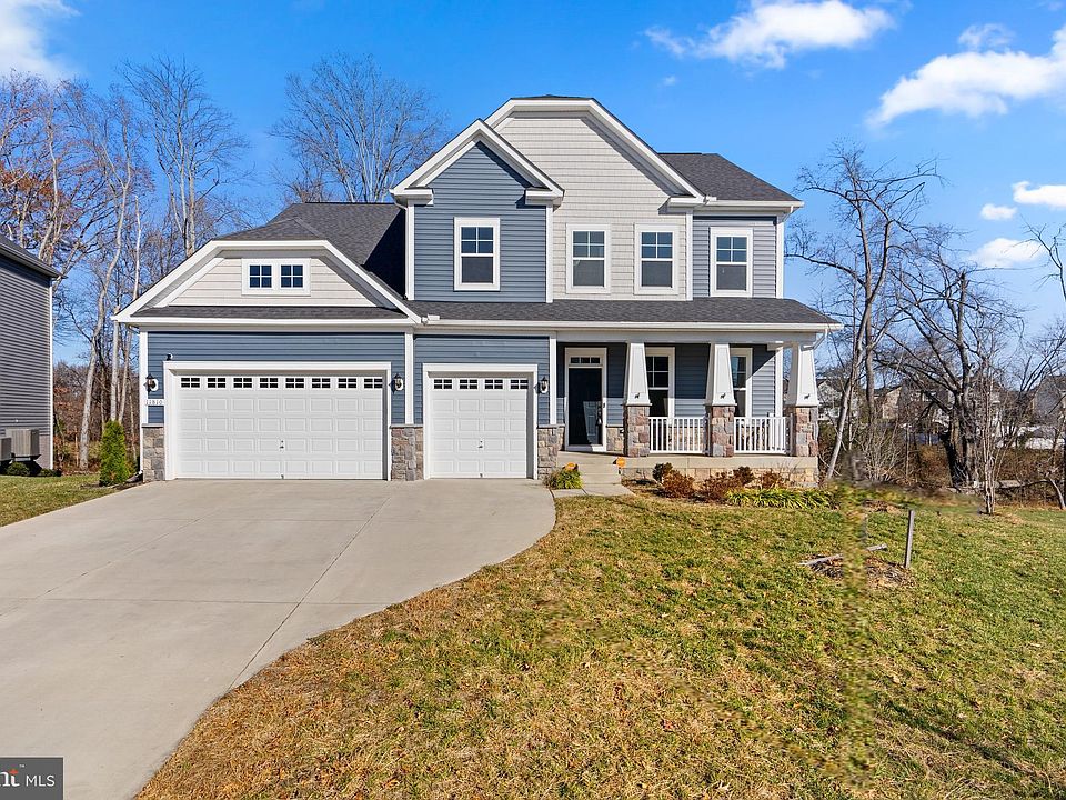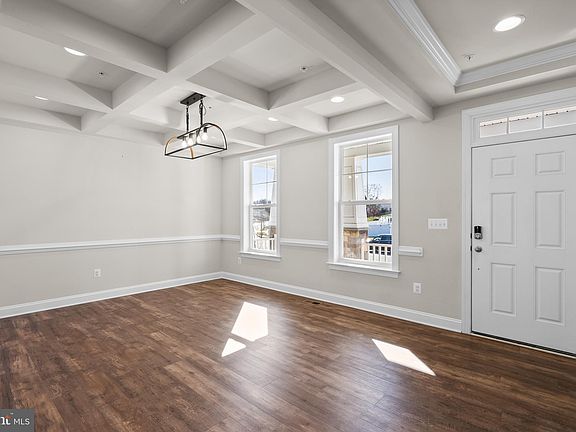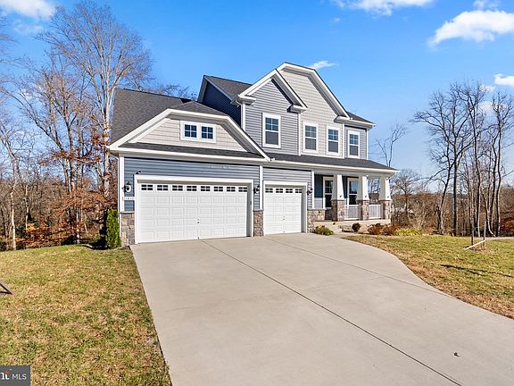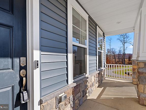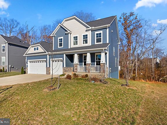 Constructed in 2021, this 5-bedroom, 4.5-bathroom residence is a meticulously planned living space. Assumable 3.75% VA Loan is available. Positioned on a verdant lot with neighboring Eco Pond and convenient walking trails, this home offers a peaceful retreat with modern amenities. The interior features an open floor plan on the main level, with LVP wood flooring, a formal dining room with a coffered ceiling, and a family room with recessed lighting. The gourmet kitchen boasts a 13-foot island, quartz countertops, stainless steel appliances, and soft-close maple cabinets. Additional spaces on this level include a sunroom, an office with French doors, a mudroom, a half bath, and access to a 3-car garage. Moving upstairs, there are 4 spacious bedrooms, including the primary suite with a tray ceiling, sitting room, walk-in closets, and an ensuite bathroom. The lower level enhances functionality with an additional office space, a large rec room with wall-to-wall carpeting, recessed lighting, a full bathroom, a comfortable bedroom, and ample storage space. This newly constructed property combines comfort, luxury, and convenience.