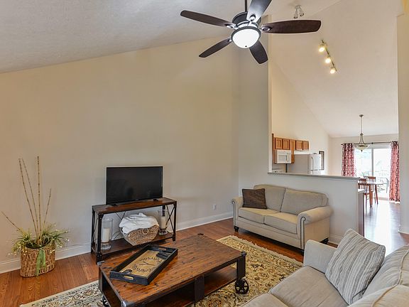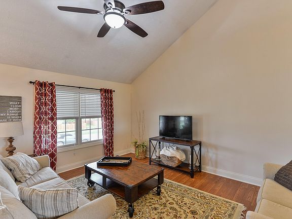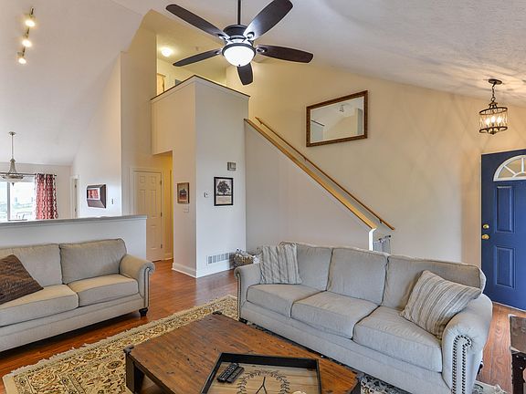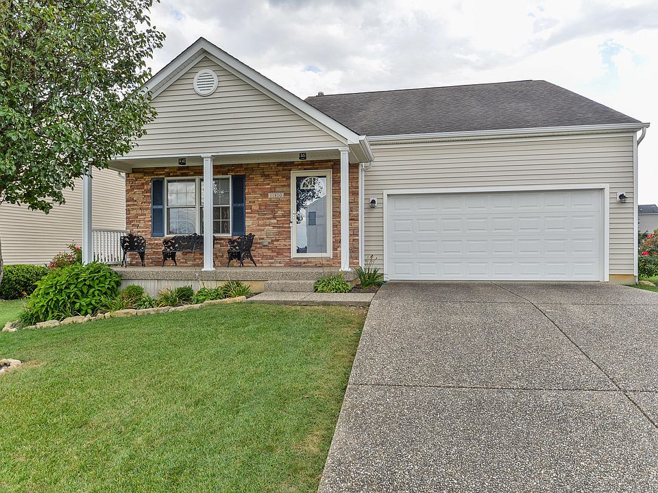 This lovely, stone front home is move-in ready! As you enter, you are greeted with vaulted ceilings and beautiful hardwood floors. Featuring an open floor plan, the living room flows into the large eat-in kitchen with lots of natural light. Off the kitchen is a large recently re-finished deck overlooking a spacious, fenced in backyard, with ample greenspace. The primary bedroom suite is located on the first floor, in addition to the laundry room. There are also two nice sized bedrooms upstairs, along with a full bath and double vanity. The finished basement would be a great space for entertaining guests and watching a game. It could also be a great kids' playroom. This home is in a great location within a short distance to 2 great schools and easy access to the Gene Snyder Freeway! Schedule a private tour of this beautiful family home soon!