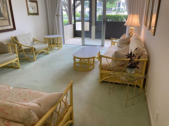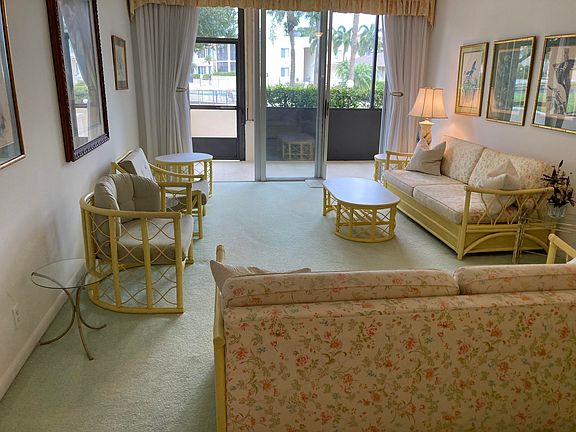 Ground floor unit in an over 55 community with many amenities Near Shopping and Dining between I-95 and Turnpike. This is an Older community with large rooms and open spaces between buildingsThe step down living room has a dining area as you walk into the unit. Newer kitchen and one of the baths is updated. The New owner may want to customize the master bath and make some updates in the kitchen.A screened in porch and covered carport make for Easy living. Call for an appointment to see.