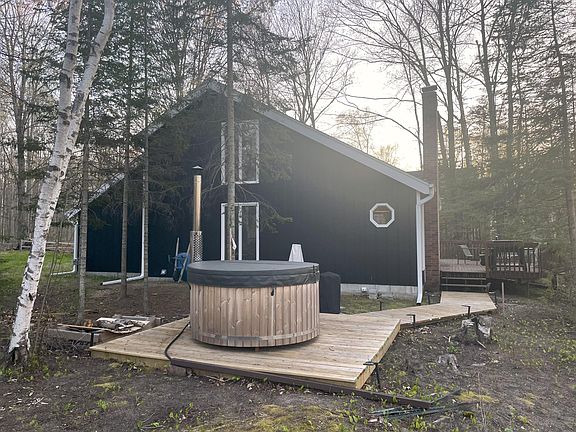 Welcome to one of Michigan's best kept secrets, The High Banks! This charming cabin is perched in the woods above a sweeping vista of gorgeous forest and open blue water. All of this can be enjoyed from the view off the spacious deck, or the large hot tub, or from the giant picture windows in the main living area of the home. Functional, stylish, and perfectly ''Michigan'', this cabin has it all, including a sauna, wood stove, breakfast bar, and 3 sleeping quarters. The sale includes the adjoining lot, (nearly 4 acres total) which has a cleared space to build another structure, and features a separate well and electrical panel, ready to go! Short walk down the bank to a private beach with very little traffic. This is ''up north'' at it's finest!