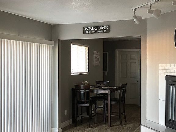 Apple Valley 5 bedroom, 3 bath home with attached double car garage Cozy fireplace in the living room, large fenced yard, large concrete patio, fire pit with sitting area and shed in the back yard.
