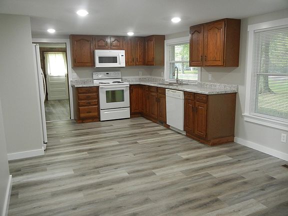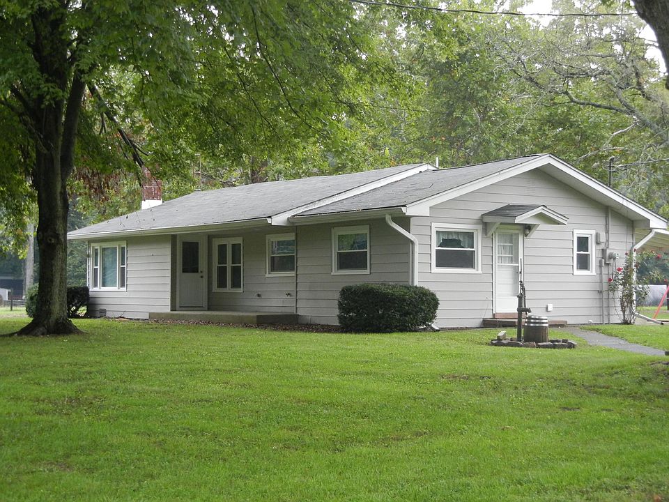 Country home with large shaded yard. Completely remodeled and rebuilt. New paint, walls, floors, AC, bathroom, and insulation. Large kitchen/living room, family room, laundry room, 2 bedroom, 1 and 1/2 bath. All appliances. Front and back porches, detached large garage. Renter responsible for water, electric, and propane heat. No pets. Nonsmoking only. Looking for couple or small family