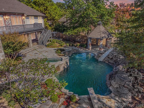 The Estates of Gray Stone! One of the most prestigious neighborhoods in Bixby School District! This executive home has it all! Master suite & two spacious bedrooms w/private baths o main floor, huge bedroom w/private upstairs w/tremendous walkout floored attic space that could easily be converted to additional living, plus fifth bedroom in mother0in-law quarters in walk-out basement! Beautiful office just off of entrance w/book shelves/desk. Fabulous formal dining plus casual dining w/dual fireplace. Unbelievable living w/wet bar & fireplace. Two half baths, two utility rooms, two kitchens (main kitchen has double Wolf ovens, Sub-Zero Frig, Wine Frig, Compactor, island, pantry, etc.) There is a balcony to view the gorgeous gunite pool, spa, gazebo, outdoor fireplace & gardens! The covered back patio also has a complete outdoor kitchen! This immaculate estate is situated on approx one-half acre privacy fenced lot.
