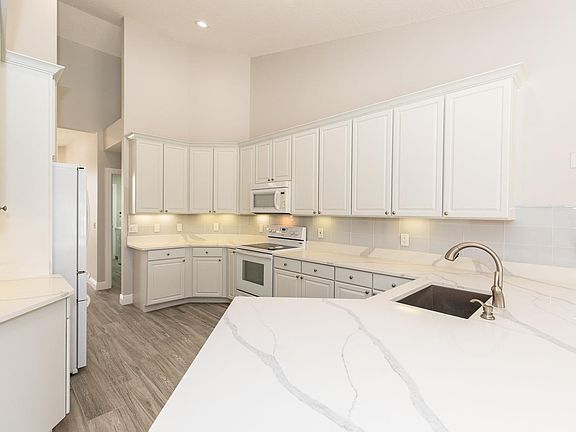 Panoramic lake views from this remodeled 3 bedroom 3 bath home + office + hobby room on a spacious 1+ acre corner estate lot.New white quartz counter tops in the kitchen. Partially remodeled bathrooms. Beautiful tile floors that look like wood. Spacious 3 car garage. All new baseboards, toilets & light fixtures. All new LED hi-hat lights. New $30,000 roof installed Dec. 2017. Vaulted ceilings. Screened and heated over-sized pool. Finished garage floor. One Ac replaced 8/2015 and one in 10/2017. Pool heater replaced 2015 and pool pump in 2017
