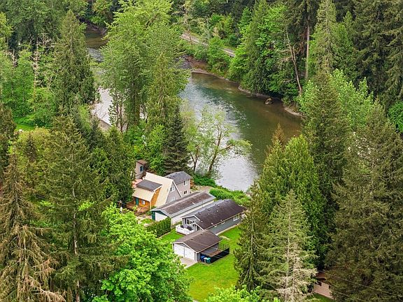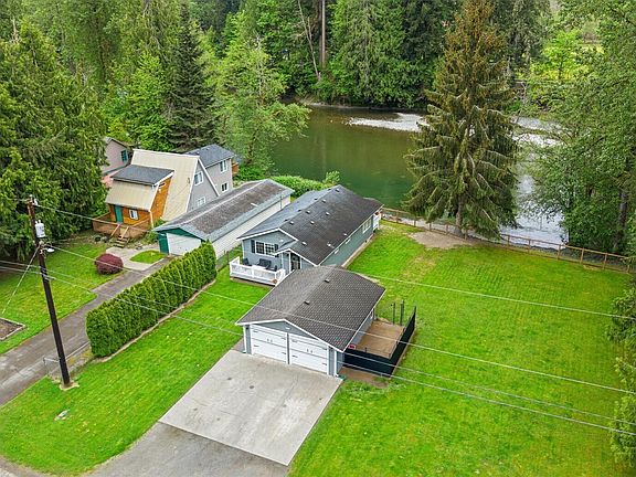 Awesome Riverfront Home in Arlington on HUGE Lot. Ideal location on a quiet dead-end road in the Rainbow Springs community (gated), close to amenities in Granite Falls. 2 Bedroom Home lives large w/ an open floorplan that starts w/ full bathroom, utility & living room, and transitions to a large kitchen w/ island, granite counters, ss apps, that connects to dining/den area looking out to the patio & river. Step outside to PNW bliss. Entertain, swim, fish, & relax on your 122 feet of sandy riverbank. River is deep enough to swim + a huge rock to jump off! The beautiful yard has SO MUCH SPACE + Dog run. 2 car garage w/ workbenches. Pre-Inspection Available. New back door & updated decks. Community lake & riverfront parks. Don’t miss this one!