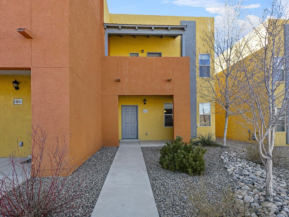Discover modern living in this 2-bedroom townhouse located in Volterra Village. With breathtaking views of the Sandia Mountains, this home offers a perfect blend of style, comfort, and convenience. Kitchen feature granite countertops, a bar for casual dining, a spacious pantry, and stainless steel appliances, including a gas range--ideal for culinary enthusiasts. Primary bedroom features a private balcony, where you can savor both serene sunrises and vibrant sunsets of the mountains. The backyard, situated between the house and the detached 2-car garage with a private driveway, provides a peaceful space for outdoor relaxation or entertaining. Conveniently located, this home is perfect for those seeking easy, comfortable living with quick access to business and recreation.