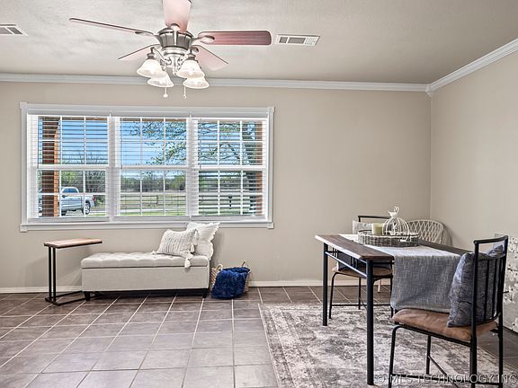 Welcome Home! Just minutes from the conveniences of Owasso and Claremore, this country home sets on 1.7acres. Newley refinished exterior including new windows, all new siding, trim with cedar accents and paint! 2living, large dining area, 3 bedrooms, 2 baths. 2 Storage buildings, one with overhead door. Great for Storage or a workshop! New light fixtures, carpet (in bedrooms) and bathroom vanity. Updated flooring in great room. Storage for an extra deep freeze, or convert it to a play area or separate office space. Mature trees, views for miles! Beautiful Sunsets and Sunrises with covered front and back patios to enjoy them.
