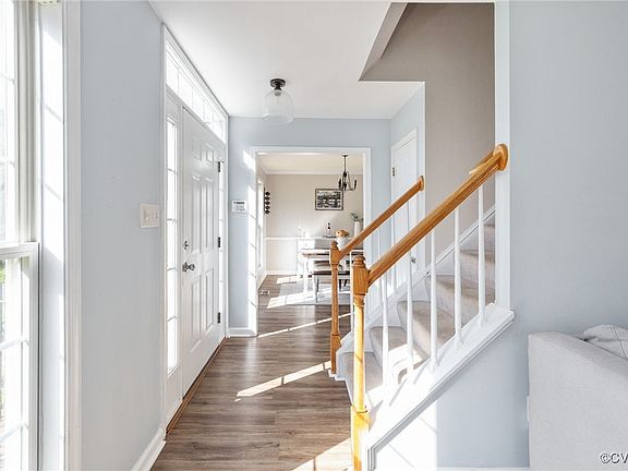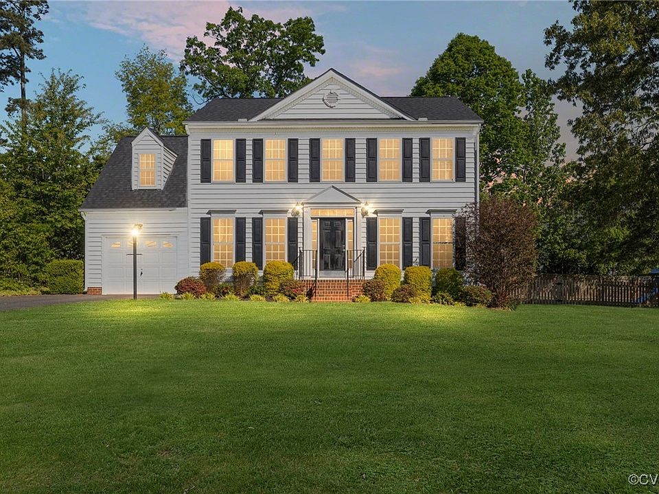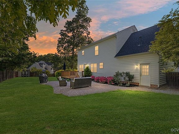 Welcome home to this beautifully maintained 4-bedroom, 2.5-bath home nestled on a picturesque, park-like 1/3-acre lot in a quiet cul-de-sac, just minutes from Short Pump with NO HOA! Stepping inside, you’ll find luxury vinyl-plank flooring throughout the first floor. Off of the entry, you’ll find a formal dining room with chandelier that would also make a great home office. The light and bright kitchen features granite countertops, a large peninsula with a barstool area, and fridge to convey. An adjoining dining area is open to the main living space. The spacious family room features a gas fireplace, ceiling fan/light, and access to the back deck. A laundry closet and powder room complete the first floor. Upstairs, the primary suite features an ensuite bath with a soaking tub and a walk-in closet. Three additional bedrooms share a full hall bath with tub/shower combo. The fenced, park-like backyard features a deck, brick paver patio, and playset to convey. Situated in a prime location, this home is move-in ready! Don’t miss your chance to see it! Fence installed in 2018, new roof in 2024, new water heater in 2022.