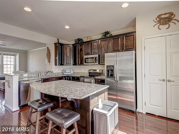Home awaits you in this gleaming townhome- don't wait for delivery or pay the construction price! The upgraded kitchen has granite counters & SS appliances, hardwood floors flow through the open kitchen and living room, & the master suite is simply spa-like. Ample living space on 2 levels. From the deck, your view of the treeline & fireworks at the ball field is unobstructed. Convenient location!