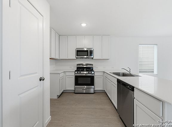 Welcome to this beautiful 4-bedroom, 2.5-bath home located in the desirable Flora Meadows community in Converse, TX. This spacious two-story home offers a bright, open-concept layout that's perfect for modern living and entertaining. The kitchen features sleek countertops, stainless steel appliances, and comes equipped with a stacked washer/dryer for added convenience. Fridge available for a small added monthly fee if needed. Upstairs, the primary suite includes a walk-in closet and private bath, while three additional bedrooms provide plenty of space for family or guests, including one off the primary perfect for a nursery, game room, or home office! Enjoy a fenced backyard, ideal for relaxing outdoors. High-speed internet is also included in the rent, making it easy to work from home or stream your favorite shows. With easy access to major highways, shopping, Randolph AFB, and local schools, this home offers the perfect combination of comfort, convenience, and value. Schedule your showing today!