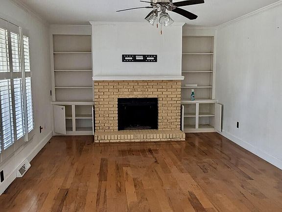 Great sprawling ranch situated on almost 2 acres. This home offers formal family room with fireplace, eat-in kitchen, dining room, convertedgarage to a large family room with fireplace, office, master with dual closets, tile baths, wood floors, stainless steel dishwasher and microwave, built-in bookshelves, rocking chair front porch, crown moldings, plantation shutters and beautiful open lot that offers countless possibilities. Property owned by US Deptof HUD Case#387-510591 . Insurable Code = IN(Insured). Sold ''AS-IS''. EHO. Subject to appraisal. Seller makes no representation or warranties as to property condition.